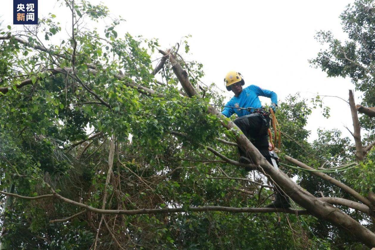 r台风来临前,攀树师会提前评估高大树木的状况,适当修剪枝条,防止树木倒伏,保障居民安全。